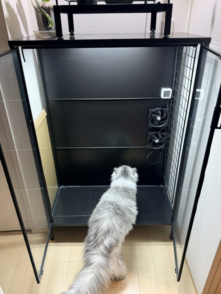 空っぽになった温室をチェックする猫さま。この子と離れることが何より辛くて、何度も泣きました!子どもがいない私にとっては大切な家族で、愛おしい存在です。半年の予定とはいえ、猫にとっての半年って何年分に値するんだろう…と思いながら「いい子にしててね!」としつこいくらいに撫でてきました。